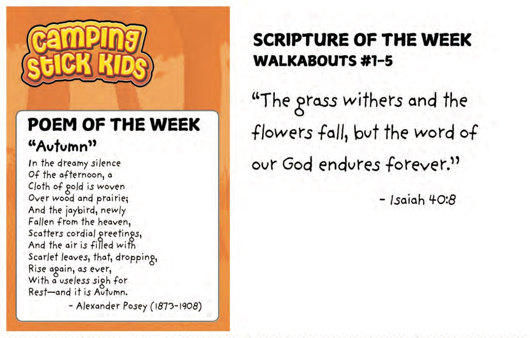 Make Autumn walks meaningful with our interactive Autumn Walkabout Cards! Kids can track their adventures, observe nature, ask questions, and memorize weekly scripture and poetry. Includes prompts for drawing, writing, and using our picture pack to capture what they discover. A perfect way to explore God’s world together! Enjoy over 20 days together.