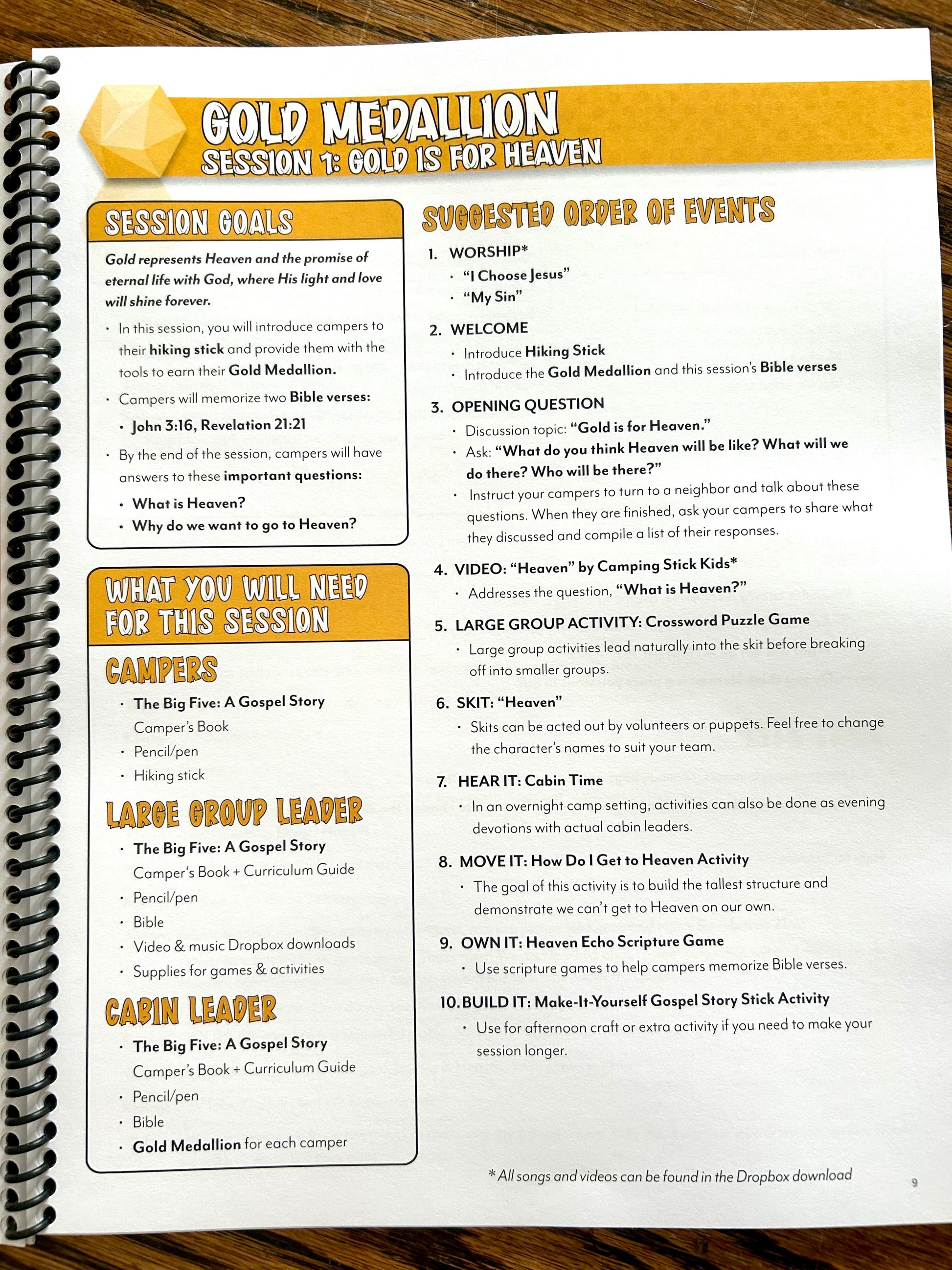 The Big Five A Gospel Story Leaders Guide with campers kit